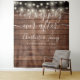 Featuring pretty string lights and chic typography script on a wood panel background, this rustic wedding photo booth backdrop can be personalized with your names and special date. Designed by Thisisnotme©