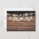 A rustic RSVP card featuring pretty string lights on a barn wood panels background. Designed by Thisisnotme©