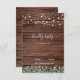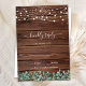 Invite friends and family to your wedding with these budget elegant yet rustic wood with string lights and eucalyptus greenery wedding invitations and rsvp cards. These wedding RSVP cards feature elegant white string lights on barn wood with with botanical greenery design.. COPYRIGHT © 2020 Judy Burrows, Black Dog Art - All Rights Reserved. Rustic Wood String Lights Wedding RSVP Note Card