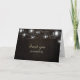 Rustic wood background with hanging string of lights and light bulbs Thank You Card perfect for your country wedding. Customize it with your text on the inside of your card. Check our store for invites stickers and many more of this beautiful design.