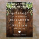 This rustic wood string lights with greenery wedding welcome sign can be personalized with your information in modern typography. Designed by Thisisnotme©