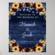 Rustic Wood Sunflower Navy String Lights Wedding Poster