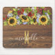 Rustic Wood Sunflower Watercolor Personalized Mouse Pad