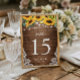 Rustic Wood Sunflowers String Lights Lace Wedding Table Number Card.