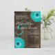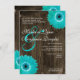 Rustic Wood Teal Gerber Daisy Wedding Invitations