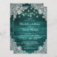 Rustic Wood Teal Lace String Lights Wedding Invitation