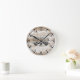 Rustic Wood Texture Deer Woodland Monogram Round Clock