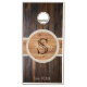 Rustic Wood Tone Circle Label Monogram Cornhole Set