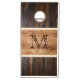 Rustic Wood Tone Horizontal Stripe Monogram Cornhole Set