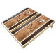 Rustic Wood Tone Monogram Stripe Design br Cornhole Set