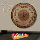 The personalized dart board will be perfect for my daughter's game room in their new house! It was packaged well and arrived with no damage. It is rather sturdy. Because of the weight, I am going to recommend they use an anchor bolt to secure it or nail into a stud behind the drywall. The printing turned out exactly like I saw it on the preview.