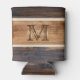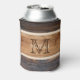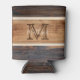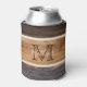 Rustic Wood Tone Stripe Monogram Can Cooler