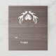 Rustic wood wedding blank folded place cards. Elegant design with deer antler logo and faded heart.