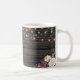 Rustic wood Wedding Mug design with lace details and string of lights. Beautiful floral details are in first plan and make these design elegant and chic. Design is easy to personalize, if you wish to change fonts please Click to customize further. This design is perfect for outdoor weddings and barn theme weddings. Designed to coordinate with our "Rustic Floral Wood Wedding" wedding collection.