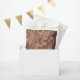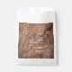 This design features a rustic wood background. The simple brown wooden background is complimented by the white text and modern clean center circle element which encircles the title. The brown tones of the wood grain create a rustic country woodland garden feel. Elegant wedding favor bag design with modern elements. Matching wedding invitations and other stationery items are also available.