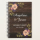 Vintage, elegant, rustic wooden wedding planner book with country blush pink flowers and couple names. Perfect choice for spring or summer celebration.