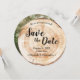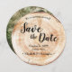 Announce your upcoming wedding with this rustic wood slice–inspired save the date. Featuring a round design that mimics natural tree rings, this customizable announcement includes your names, wedding date, location, and a photo-backed option with a scannable QR code for your wedding website. Perfect for couples planning a rustic, woodland, boho, or outdoor wedding, this unique save the date sets a warm and memorable tone for your celebration.