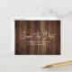 Simple rustic wedding save the date postcard featuring a barn wood background.