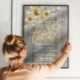 Signature Cocktail Drink Menu Wedding Decor Poster Templates - Faux Gold Foil Script Vintage Sunflowers and Elegant Lace on Rustic Wood Background.
