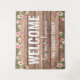 Rustic welcome home tapestry with a wood texture background and pink floral print. Personalize with family name.