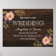 Simple, country, modern script, rustic wood welcome wedding poster with watercolor blush pink flowers.
