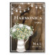 Rustic Wood White Flowers Lights Harmonica Wedding Table Number