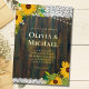 Beautiful modern, elegant trending rustic wood, Sunflowers lace and lights graphics with real gold foil typography wedding invitation. Perfect for a rustic wood themed wedding, vintage art deco wedding, black tie wedding, roaring twenties. Matching RSVP postcard is here: https://www.zazzle.com/rsvp_with_menu_template_black_gold-256744067070192796