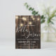 Rustic Wood With String Lights Wedding Invitation Postcard