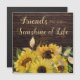 Refrigerator magnet greeting card for a friend with a rustic dark brown wood design, decorated with bright yellow sunflowers and a whimsical script font, "Friends are the sunshine of life."
