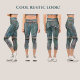 Rustic wooden gate and iron in blue capri leggings