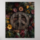 This poster features a rustic wooden peace symbol centered against a weathered wood background, framed by a lush arrangement of wildflowers. The composition blends earthy textures with vibrant blooms in warm autumn tones, including sunflowers, daisies, and dried blossoms. The natural wood grain of the peace sign adds a handcrafted feel, while the floral wreath creates a harmonious balance between strength and softness. Perfect as bohemian wall art, it evokes a sense of peace, freedom, and nature-inspired living. Ideal for cozy interiors, eclectic spaces, or as a statement piece in a rustic home, this design merges hippie style with timeless elegance.