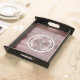 Add a touch of quaint country charm to the cottage, cabin, lake house, time share, or she shed with this customizable, rustic-themed wooden serving tray, which features a weathered / paint-faded / vintage / distressed wooden fence "secured" with screws, wraparound white lettering, and faux engraved fields for names, places, "founding dates," and any other text you choose to add.