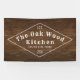 A woodgrain backdrop, gives this outdoor banner a rustic feel. Great for chefs, restaurants, food-based businesses, or construction companies. Customize your (business) name and tagline.