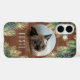 Carry a picture of your best friend everywhere you go with this charmingly rustic phone case. The design features a rich, dark woodgrain background beautifully framed by watercolor green pine branches with elegant gold accents. This case provides the perfect woodland-themed backdrop to showcase your favorite pet photo. It’s an ideal gift for any pet lover! Simply upload your own photo of your cat or dog and add their name to create a one-of-a-kind accessory that keeps your furry companion close to your heart.