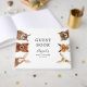 Rustic and boho woodland animal theme baby shower guest book featuring watercolor illustration of a raccoon, fox, deer, owl, bear, and rabbit.