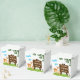 Favor box for kid's birthday with the theme of rustic woodland showing deer, rabbit, and hedgehog.