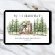 Celebrate the announcement of your pregnancy, with this watercolor woodland-themed pregnancy announcement, featuring a cozy bear nestled beside a tree stump in a lush forest woodland setting. Earthy tones, hand-painted watercolor textures, and gentle forest details set the tone. Available in print, as a digital download or both!