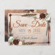 A perfect compliment for your Rustic Woodland Feathers and Floral Bloom Collection wedding theme, this save the date postcard features a wooden frame bordered by an assortment of white, hickory and burgundy flowers, woodland leaves and a set of rustic feathers set on a beige, chestnut, taupe and umber hand painted canvas. Easily personalize the content with your names and date. The reverse side features the information from the front of the card along with any additional information you would like to add like your website. In this digital age, surprise your friends and family with this little "Save the Date" postcard of yours.