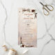 Bordered by an assortment of white, hickory and burgundy flowers, woodland leaves and a set of rustic feathers, this wedding program is set on a beige, chestnut, taupe and umber hand painted canvas. Customize the content with your names, wedding venue and date, as well as your wedding ceremony. The reverse side features your wedding party prominently placed in the center of the canvas. The design features movable graphic elements so you can customize the layout to your heart's content. This wedding program coordinates well with the rest of the items in the Rustic Woodland Feathers and Floral Bloom Collection.