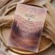A serene and atmospheric design inspired by misty mountain landscapes and quiet forest scenery. Soft watercolor layers of pine trees and distant hills fade gently into the background, creating depth and a calm, romantic mood. The muted palette of sage green, cool grey, and soft ivory gives the design a refined, nature-driven elegance—perfect for couples drawn to minimalist aesthetics and intimate outdoor celebrations.