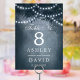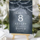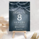 Light up your rustic wedding reception with these enchanting table numbers. Featuring a majestic woodland tree silhouette adorned with twinkling string lights against a serene blue backdrop, these table numbers add a touch of magic to your special day. Perfect for outdoor or indoor celebrations, they create a warm and inviting ambiance for your guests.