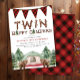 Rustic Woodland Twins One Happy Camper Birthday Invitation
