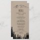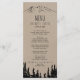 This rustic woodsy mountain dinner menu card is perfect for a woodland wedding. The nature inspired design features the silhouette of a pine tree forest and mountains on faux kraft paper. This menu can be used for a wedding reception, rehearsal dinner, or any event.