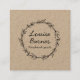 Rustic wreath business card in a unique square shape printed on brown kraft paper. country chic design that frames your name in a decorative way.