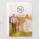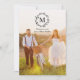 This modern, minimalist wedding thank you photo card features a pretty, rustic laurel wreath, monogram initial, and a full-bleed photo. Additional photos and text can be added to the back of the card if desired.