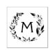 This rubber stamp design features a classic circular wreath made of delicate, hand-drawn leafy vines arranged in an organic, slightly rustic style. At the center is a bold, clean monogram letter, designed to be easily customized with an initial of your choice. The black-and-white artwork has a timeless, minimalist look that prints crisply, making it ideal for personal stationery, envelopes, tags, packaging, or branding. The open center and balanced wreath create a refined yet approachable monogram stamp suitable for a wide range of uses.