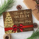 Rustic Christmas Holiday Party "Save The Date" design with Christmas Tree, Fairy Lights & Red Ribbon on wood, and custom names and date text. Impress your family and friends with this stylish and modern card. Fully customizable! Easy to use and easy to personalize.