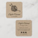Rustic brown kraft business cards for your handmade, artisan, or craft business feature two lines of custom text on the front in handwritten style block and script lettering, with an illustration of a ball of yarn with two knitting needles. Add five lines of custom text to the reverse side in matching fonts. Includes three social media icons and a field for your username.