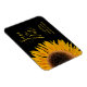 Rustic wedding, elegant beautiful yellow sunflower on a black background country Save The Date announcement fridge magnet. Simple print flower design. Image copyright Marg Seregelyi Photography.