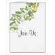 Rustic yellow lemon and blossoms theme wedding - hand painted lemons and blossoms decorate the front while pale yellow and leaf green watercolor brush stroke stripes are featured on the inside - hand written calligraphy paired with a clean non serif font for a modern rustic appeal. Design by ©WhimsicalArtwork™ for the BarefootBride™. This is part of a complete mix and match wedding suite as well as birthday and baby shower . If you need help customising this design please contact indy.designer@yahoo.com